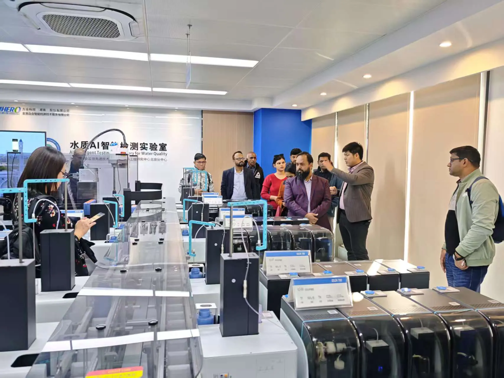 On the final day, Lihe Technology's Technical Director, Huang Haiping, together with Zhou Yirong, welcomed the delegation to the company's Beijing Branch for an on-site visit. The team introduced their independently developed AI Laboratory—an integrated platform that brings together artificial intelligence, big data analytics, and automated testing technologies. The AI Lab enhances both the efficiency and accuracy of water quality monitoring and offers practical, cost-effective solutions for rural and remote areas.